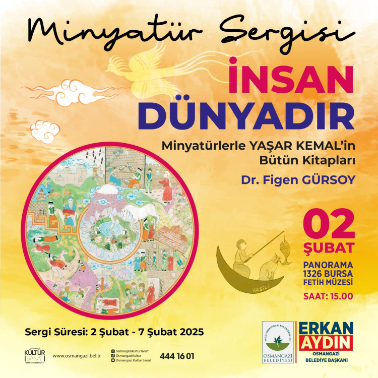 Bursa Osmangazi Belediyesi’nin ev sahipliği yaptığı ‘İnsan Dünyadır Minyatürlerle Yaşar Kemal’in Bütün Kitapları’ adlı minyatür sergisi, 02 Şubat Pazar günü sanatseverlerin ziyaretine açılıyor.